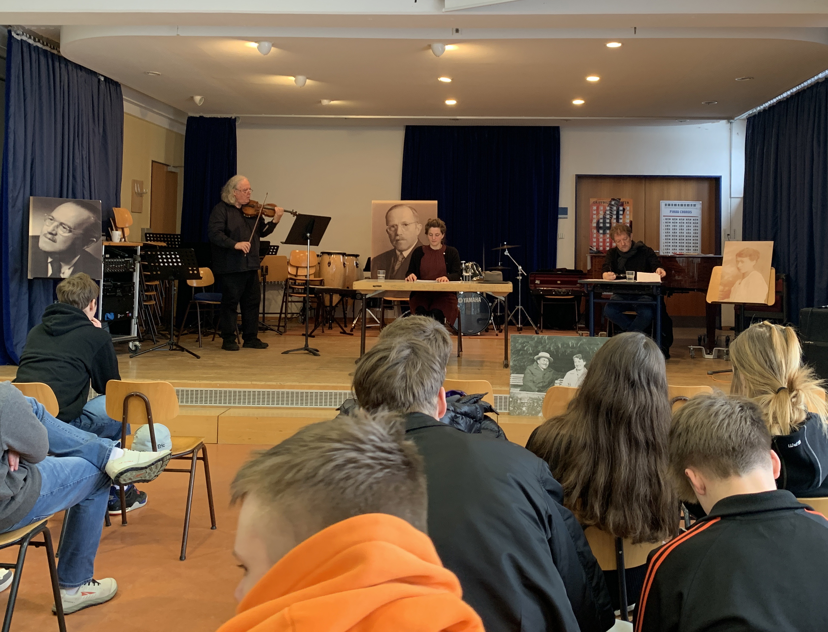 Eugen Grimminger – eine Inszenierung die berührtDass der Geschichtsunterricht Grundlagenwissen und Fakten vermittelt, damit Jugendliche sich in geschichtlichen Zusammenhängen orientieren können. Die Bedeutung der Geschichtsvermittlung durch den Unterricht ist nicht von der Hand zu weisen und doch ist es notwendig, dass andere Zugänge geschaffen werden. Genau diesen Ansatz verfolgten die Schauspielerin Juliane Lang, der Crailsheimer Stadtarchivar Folker Förtsch und der in Michelbach bekannte Jochen Narciss-Sing mit der Violine. Eugen Grimminger, Häftling Z 1119/43 im Zuchthaus in Ludwigsburg wird in dieser Lesung mit Musik zu einem Gegenüber, erlebbar. Eugen Grimminger, Crailsheimer, verheiratet mit einer Jüdin, Unterstützer der Widerstandsgruppe „Weiße Rose“, einer der das Unrecht nicht einfach hinnahm, einer der gehandelt, einer der mutig war. Eigene Texte, Erklärungen und Musik bildeten eine dichte und intensive Atmosphäre und nahm die Zuhörenden mit in Gefühle, Ängste und Hoffnungen hinein, weit weg von Faktenwissen.